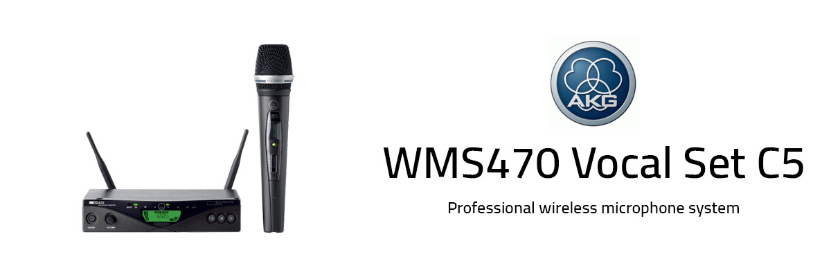 WMS470 is a professional multichannel wireless microphone system with Pilot tone transmission to prevent unwanted noise. The Vocal Set C5 includes a HT470 handheld transmitter featuring a C5 condenser microphone capsule for clear and detailed voice reproduction. The space diversity receiver offers both a microphone level and a line level output.