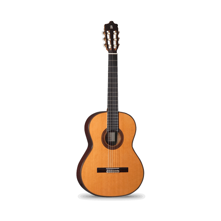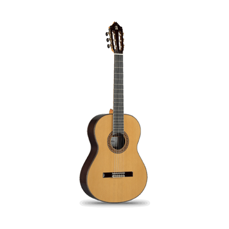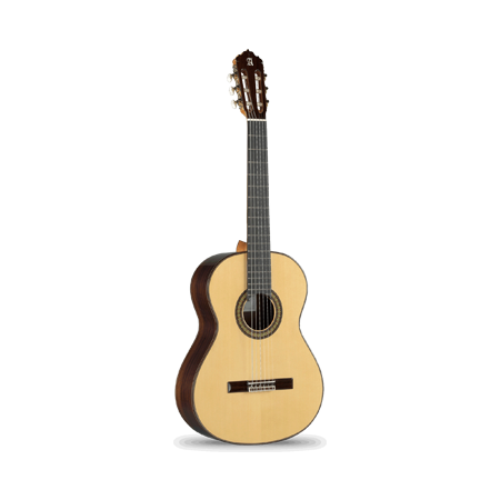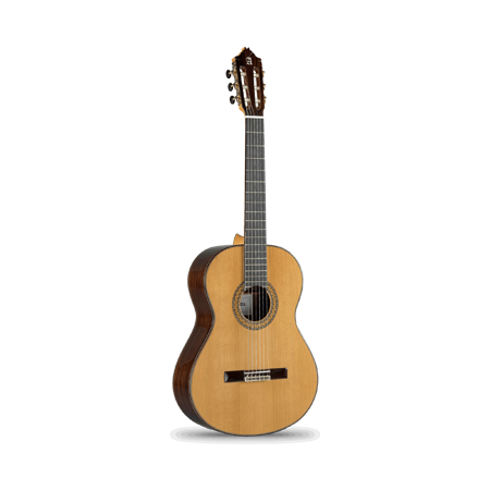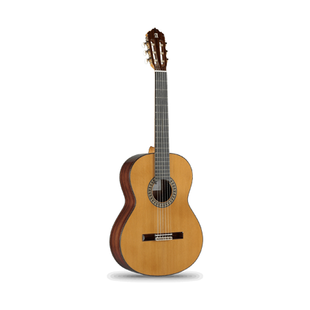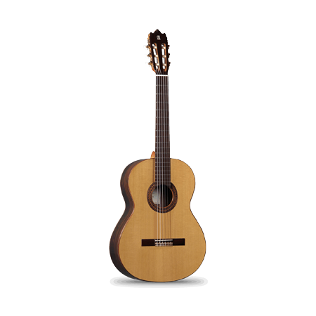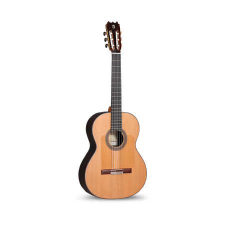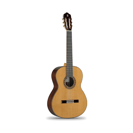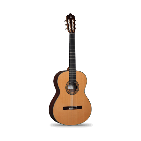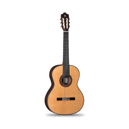 The Alhambra 6 P S Series is a classical concert guitar with proper concert width, solid cedar top, Indian rosewood body an ...