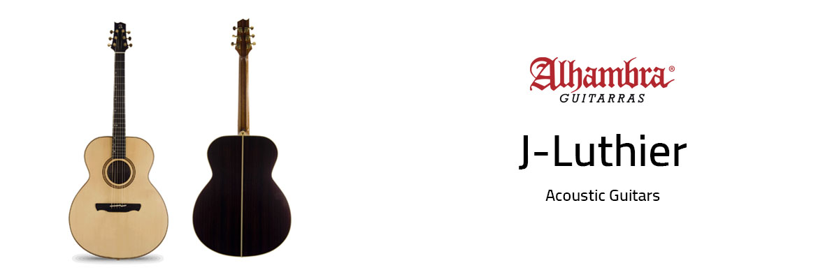 Alhambra J Luthier acoustic guitar Jumbo body. These premium acoustic guitars are hand-crafted in Spain using artisan construction techniques inherited from the Spanish master luthier. These guitars have a tone and finish difficult to find in other guitars. The Alhambra Luthier series are manufactured by an exclusive group of craftsmen in dedicated facilities.