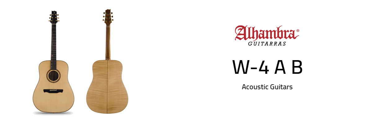 Alhambra W4 AB acoustic guitar Dreadnought body. These acoustic guitars are hand-crafted in Spain using artisan construction techniques inherited from the Spanish master luthier. These guitars have a tone and finish difficult to find in other guitars. In them, the Spanish tradition of craftsmanship is combined with modern manufacturing techniques.