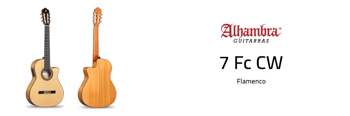 The Alhambra 7Fc is a breathtaking flamenco guitar with a stunning solid cypress back and solid cypress sides. This spectacular creation of the Alhambra luthiers features a very authentic Flamenco sound and a sophisticated cut away designed to satisfy the demands of any composition in any style. Its tone is reliable up and down each fret on all strings. It has a bright resonance, very “percussive” in a way. It cuts through the mix and undoubtedly is an excellent Flamenco guitar.