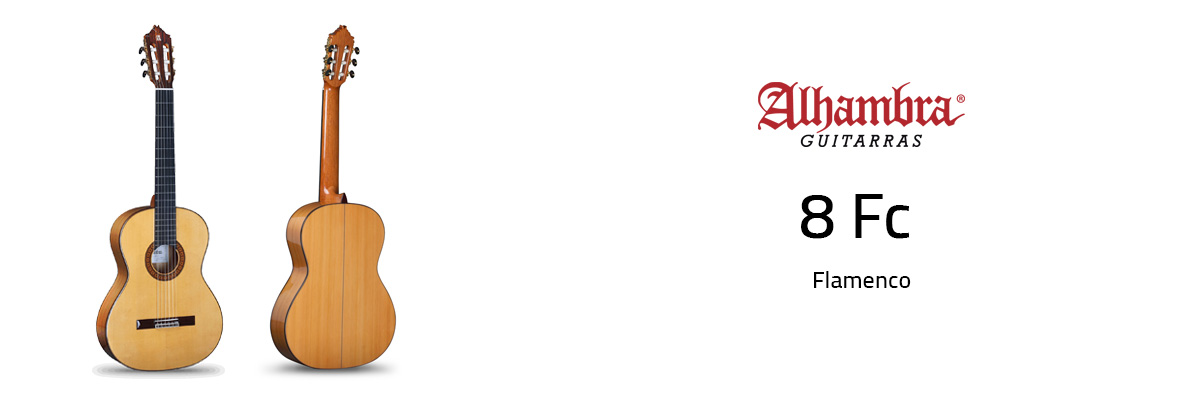 The Alhambra 8 Fc is a white flamenco guitar with selected woods and a high quality sound. The 8 Fc model is a wonderful guitar with a beautiful and authentically flamenco sound. It is also fully balanced, achieving a consistent tone across the fingerboard and a good relationship between bass and treble.