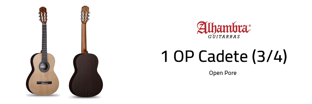 The Alhambra 1 OP Classical Guitar Cadet 3/4 from Alhambra Guitars is a perfect guitar for beginners, students and for those looking for a portable guitar. This guitar is one of the new Alhambra Open Pore series. Right out of the box this guitar surprises you with its perfect finish, beautiful woods and light weight. The satin natural finish leaves the pore of the wood open, giving a more resonant sound. Also available as Senorita and Requinto size.