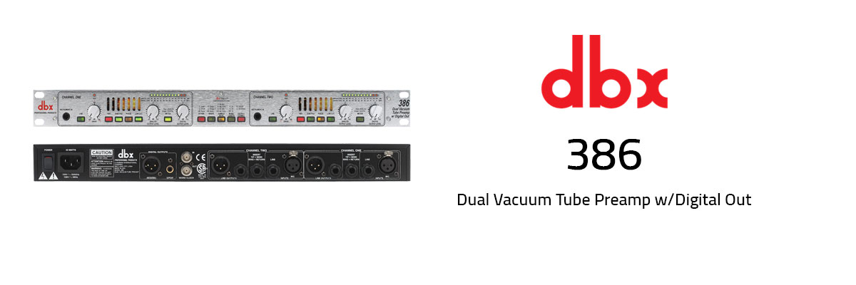 The Silver Series 386 dual channel tube mic preamp puts the best of both worlds into one affordable package by combining the warmth of the irreplaceable vacuum tube with the proprietary dbx® Type IV™ conversion system. The 386 boasts many of the same features as other products in the Silver Series, such as +48V phantom power, a phase invert switch, and low cut filtering; but also includes digital outputs in both AES/EBU, and S/PDIF formats.