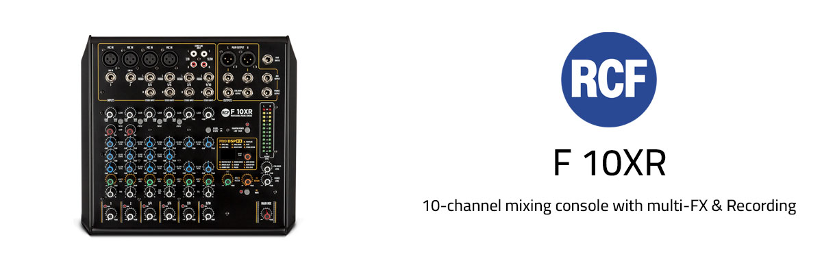 Housed in a sturdy metal chassis, each mixer features a full balanced audio path from input to output and the unique PRO DSP FX: 16 professional effects such as Reverbs (Halls, Rooms, Plates, Spring), Delays (Mono, Stereo and Multitap), Chorus, Flangers and Echoes. The models F-10XR, F-12XR, F-16XR and F-24XR, include an USB audio interface, for stereo recording on computer-based DAW and 2-channel playback.