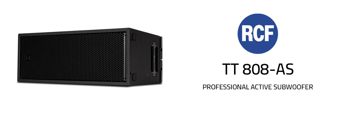TT 808-AS is a compact low-profile high-performance active subwoofer. It features two vented-loaded 8" cone woofers powered by a 1000 Watts two-channel amplifier -one for each woofer- on a baltic birch plywood cabinet painted with black polyurea and weatherproof treatment.