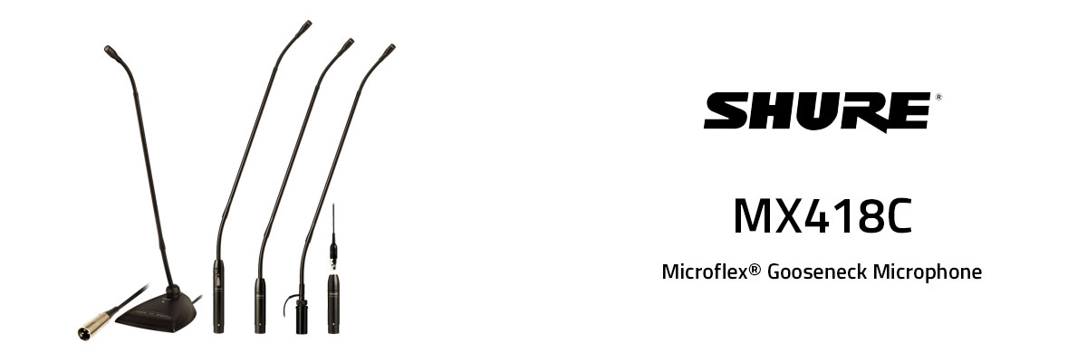 In tune with speech Microflex microphone cartridges are focused specifically to capture human voice, so the talker always comes through clearly. No installation headaches The variety of mounting and form factor options make the MX418 easy to set up in any space. Clean signal Shure Commshield® is built into Microflex to reject RF interference from ever-present smart phones, keeping the focus on the performance. Only the detail you want A snap-fit windscreen keeps breath and plosives from being a distraction. While vibration noise gets absorbed by the integrated shock mount. Only speech gets through.
