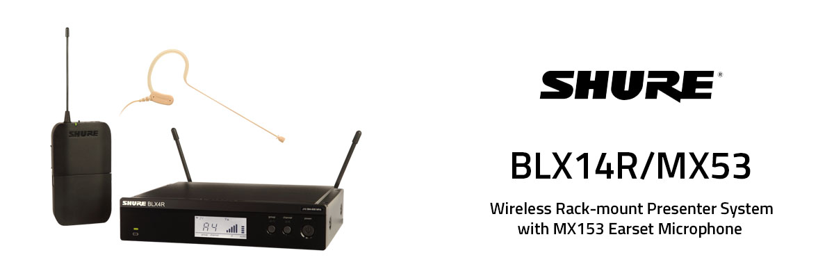 Includes MX153 earset microphone, BLX1 bodypack transmitter, BLX4R rack mount receiver, single and dual rackmount kit, two 1/4 wave antennas, zipper bag, power supply, 2 AA batteries, and user guide.