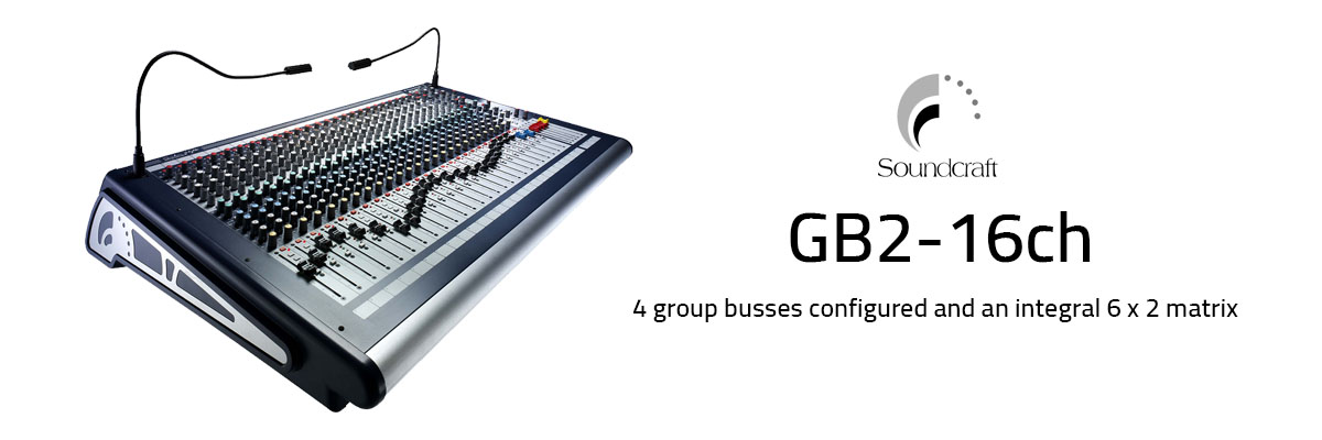 The GB2 is the latest addition to the Soundcraft GB Series, featuring 4 group busses configured as 2 stereo subgroups and an integral 6 x 2 matrix. Intended for installed-sound and Audio-Visual applications that do not require the functionality provided by the GB4 or GB8, the GB2 is available in frame sizes of 16, 24 and 32 mono inputs, each with 2 stereo inputs as standard. Each input features the high-performance GB30 Mic Pre and GB30 Equaliser designs of the GB4 and GB8, along with 6 Aux buses.