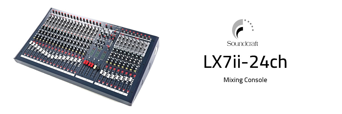 The LX7ii continues in the tradition of the highly successful original LX7 in its applications in live performance PA, installed systems in churches, theatres and any similar application where a compact sized console needs to provide a large number of inputs and maximum output capability. Both recording and live applications are easily satisfied by the LX7ii.