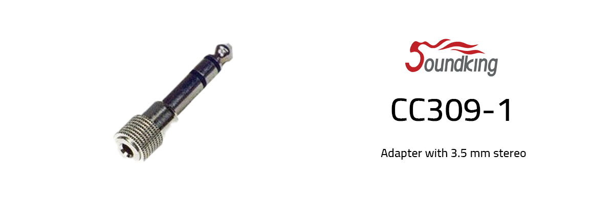 Super User CC309-1 Soundking model CC309-1 is an adapter with 3.5 mm stereo (mini jack) for 6.3 mm stereo (1/4 "jack). Nickel-plated steel material.